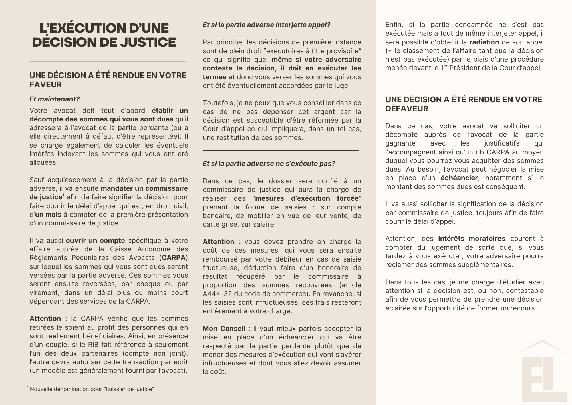 BROCHURE « L‘EXÉCUTION D’UNE DÉCISION DE JUSTICE »