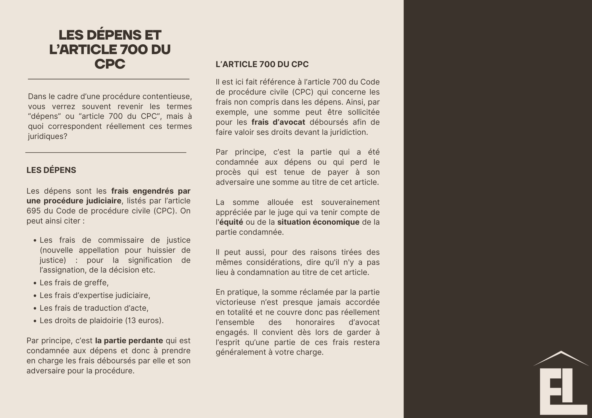 BROCHURE « LES DÉPENS ET L’ARTICLE 700 DU CPC »